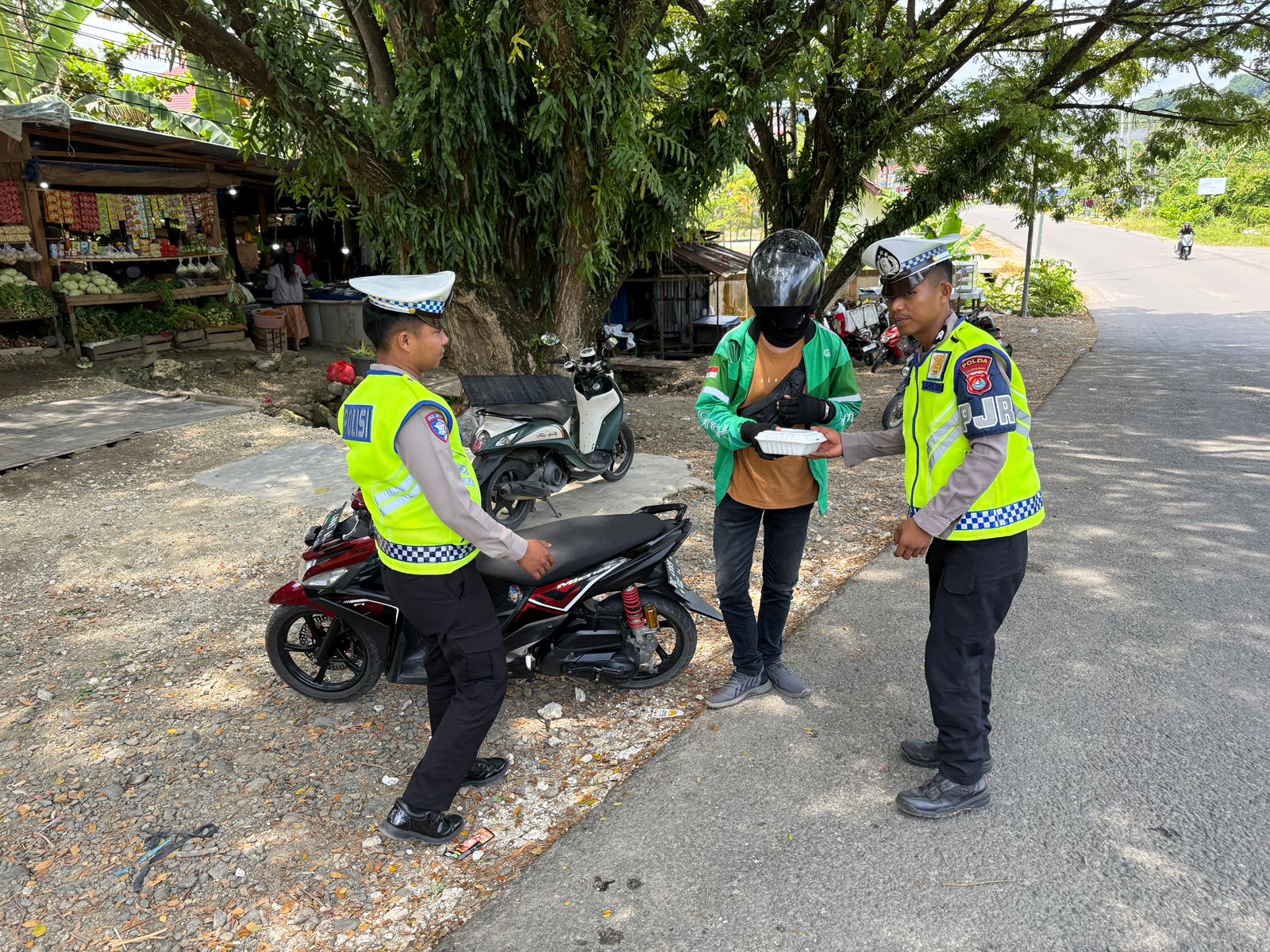 Tak hanya berbagi makanan, petugas juga memanfaatkan kesempatan tersebut untuk menyampaikan pesan penting tentang keselamatan berlalu lintas. Beberapa poin utama yang disampaikan antara lain pentingnya menggunakan perlengkapan keselamatan seperti helm standar SNI, mematuhi rambu lalu lintas, serta menjaga kondisi kesehatan dan kondisi kendaraan agar terhindar dari kecelakaan.