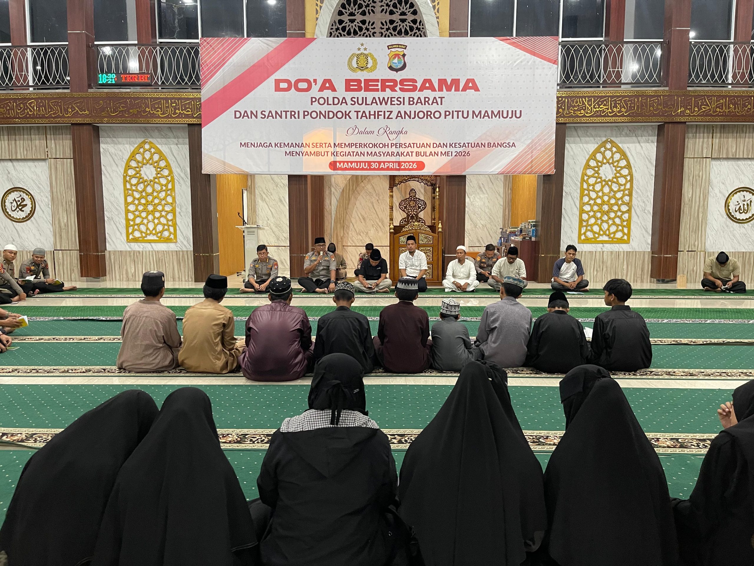 Kegiatan ini melibatkan para santri tahfiz dari Anjoro Pitu Mamuju, di Masjid Jabal Rahmah Mapolda Sulbar, Kamis (30/4/26).