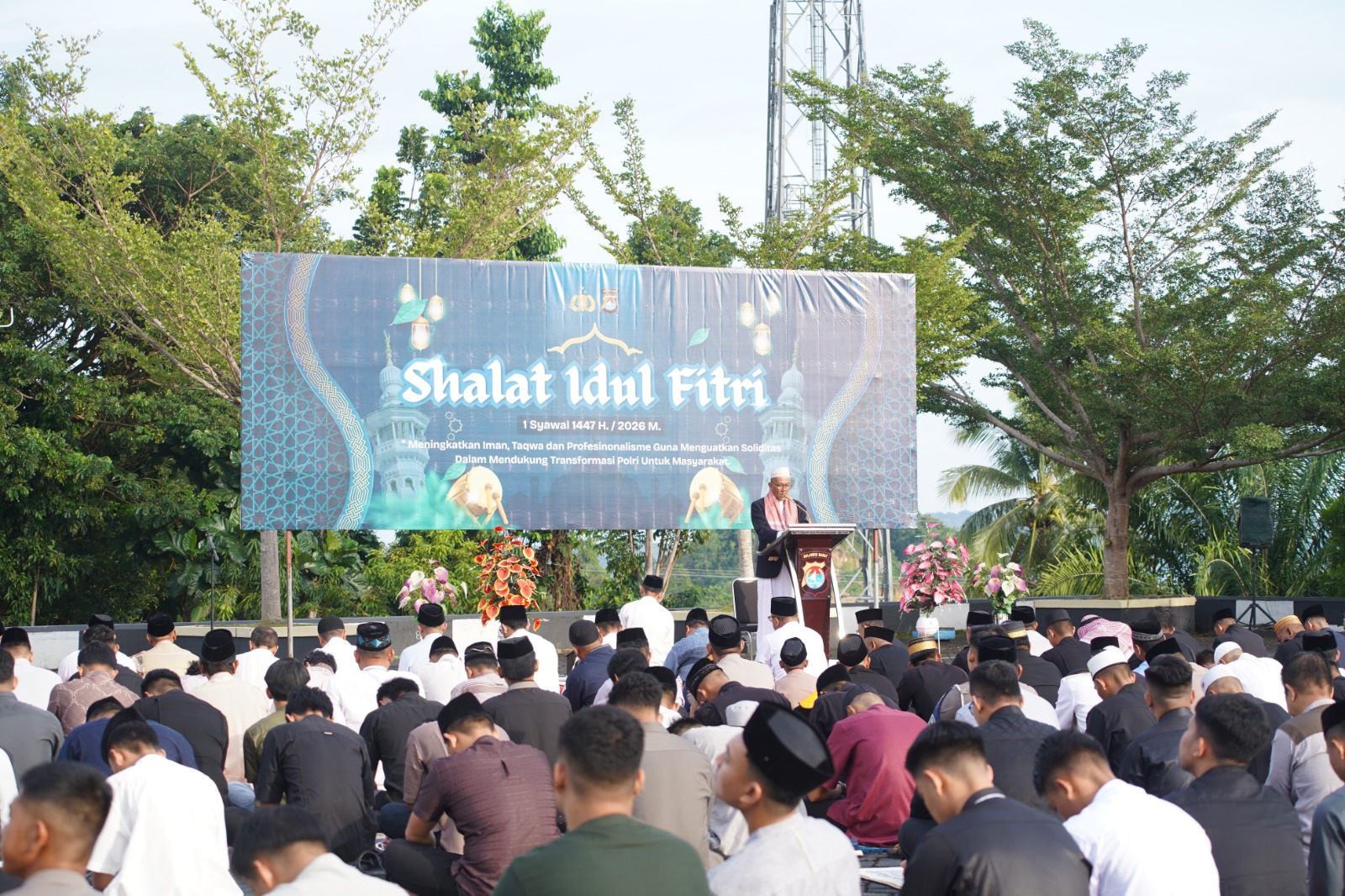 Polda Sulbar – Gemuruh takbir juga menggema mengiringi suasana penuh berkah pada perayaan Hari Raya Idul Fitri 1447 H di Polda Sulbar.